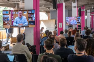 Raffaele Laudani, Assessore Urbanistica ed edilizia privata, con delega al progetto Città della conoscenza e memoria democratica della Città di Bologna, ha parlato di come “fare della conoscenza la politica industriale di questa città” e di Dumbo “come un nuovo distretto del mutualismo e dell’economia collaborativa e motore dello sviluppo innovativo futuro della città”.